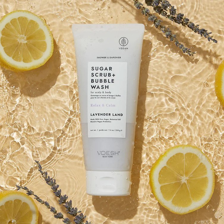 „Voesh“ cukraus šveitiklis kūno ir galvos odos priežiūrai yra praturtintas veganinės kilmės probiotikais, kurie maitina odą ir stiprina jos apsauginį barjerą, bei botaninių aliejų mišiniu, suteikiančiu odai šilko švelnumo pojūtį. Neabrazyvinė priemonė švelniai pašalina negyvas odos ląsteles ir transformuojasi į prabangias putas, suteikiančias odai švarumo bei gaivos pojūtį.