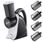 Ši „Zyle“ daržovių pjaustyklė turi penkis, pakeičiamus priedus, kurių dėka savo norimus patiekalus pasiruošite vos vieno mygtuko paspaudimu. Tarkuokite sūrį, smulkinkite salotas, pjaustykite daržoves!
