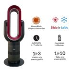 Ventiliatoriai be besisukančios sparnuotės yra naujausia hidrodinaminė inžinerijos technologija. Esminiai ventiliatorių be menčių privalumai yra absoliutus saugumas, tolygesnis oro srautas, ypač tylus veikimas ir modernus dizainas, papuošiantis bet kurią namų ar biuro erdvę. Šis prietaisas turi ir oro šildymo funkciją, kuri ventiliatorių pavers itin funkcionaliu bet kuriuo metų laiku.