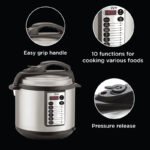 • Automatinės gaminimo programos: 10 (sauté, apkepinimas, gaminimas su slėgiu, lėtas maisto ruošimas, sriubos, mėsos, vištienos gaminimo programos, ryžių virimas, rizotas, garų funkcija).