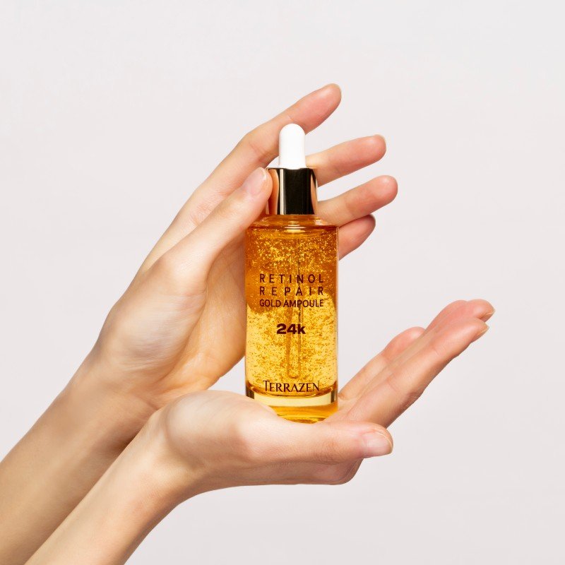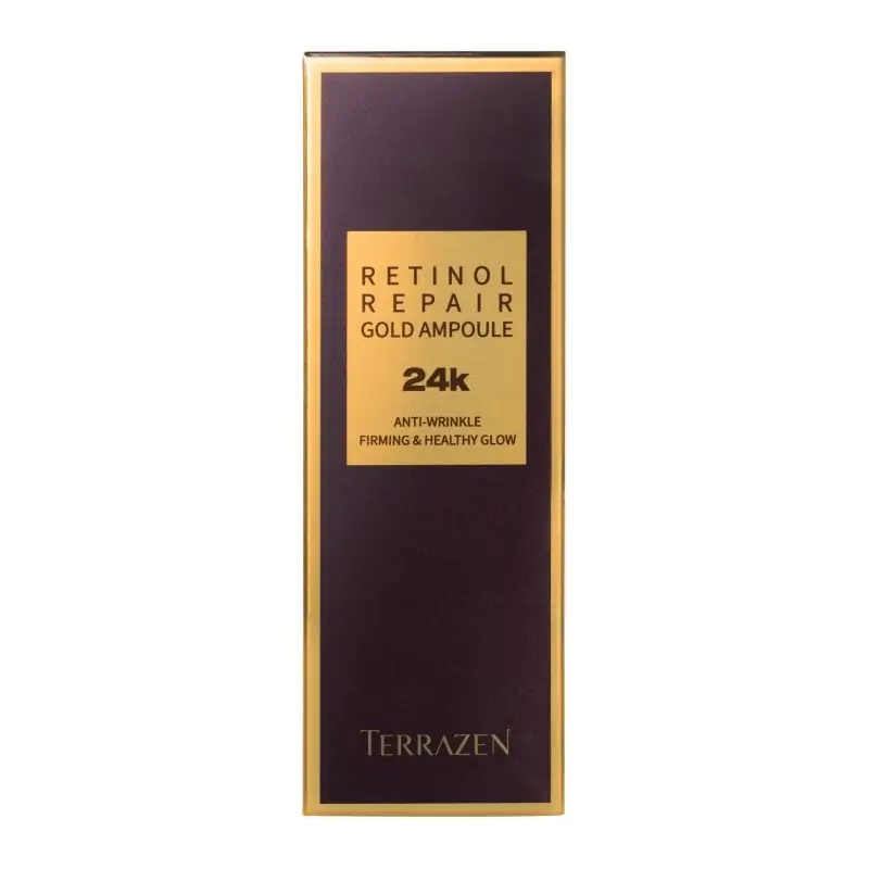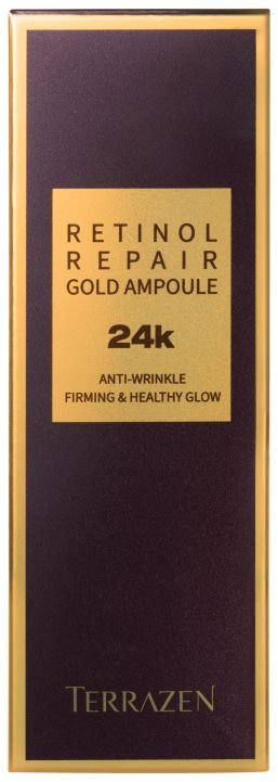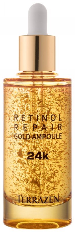 Terrazen „Retinol Repair Gold Ampoule“ – tai unikalios sudėties serumas, grąžinantis odai jaunystę ir spindesį. Dėl sudėtyje esančio gryno 24 karatų aukso ir galingo retinolio, peptidų ir adenozino derinio Terrazen „Retinol Repair Gold Ampoule“ yra slaptas sąjungininkas kovoje su senėjimu. Šis išskirtinis produktas ne tik duoda greitų rezultatų – šviesesnę ir švytinčią odą, bet ir pasižymi ilgalaikiu poveikiu prieš raukšles bei senėjimo požymius. Švelnios, aksominės tekstūros serumas iš karto įsigeria į odą nepalikdamas nepageidaujamo lipnumo pojūčio. Hipoalerginė formulė be kenksmingų medžiagų ir gyvūninės kilmės ingredientų užtikrina, kad produktas būtų tinkamas visų tipų odai, įskaitant jautrią.